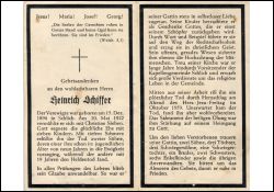 Herzschlag; ∞ 10.5.1922 Christine Sieben; 7 K., davon 1 mit 9 J. †, 1 Sohn im 2. Weltkrieg mit 19 J. gefallen; Vorsitzender der Kapellengemeinde Schlich |