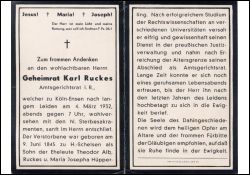 Geheimrat; Amtsgerichtsrat i.R.; Eltern: Theodor Albert Ruckes u. Maria Josepha geb. Hüpperling; |