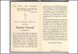 Eltern: Joseph Nowak u. Stanislawa geb. Mikolajzyk; Soldat im 2. Weltkrieg; ∞ 9.6.1946 in Blatzheim Sibilla Fuß; 1 Sohn; verunglückte auf dem Weg zur Arbeitsstätte kurz vor Mödrath; beerdigt in Blatzheim |