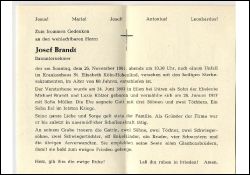 Wohnort: Manheim; Eltern: Michael Brandt u. Luzia geb. Kölzer; ∞ 26.1.1917 Sofia Müller; 5 K., davon 1 Sohn im 2. Weltkrieg gefallen; Bauunternehmer |