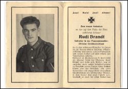 Gefallener 2. Weltkrieg; Eltern: Josef Brandt u. Sofia geb. Müller; nach Schulentlassung zunächst im Baugeschäft des Vaters tätig; nach RAD zum Heer; Heldenfriedhof Achtyrka; 1 Bruder als Pionier im Osten |