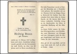 Wohnort: zuletzt Manheim; ∞ 24.10.1919 Kasper Braun in Richterich b. Aachen; 1 Sohn; in dessen Familie verbrachte sie die letzten Jahre |