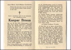 Wohnort: Manheim; Eltern: Schmiedemeister Johann Braun u. Margarethe geb. Zehnpfennig; ∞ 24.10.1919 Hedwig Reinartz aus Roetgen b. Aachen; 1 Sohn; Justizbeamter; |