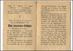 ∞ 3.9.1898 Josef Büscher, später Hauptlehrer in Manheim, † ; 9 K., davon 3 †; |