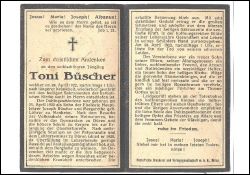 Jüngling; längere Krankheit; Eltern: Hauptlehrer Joseph Büscher u. Margarethe geb. Löhrer; Gymnasium Düren, höhere Schule Kerpen bis zur Obertertiareife; Studium an Präparandie u. Lehrerseminar Düren, schied aber 1920 wegen Überfüllung im Lehrerberuf aus; widmete sich dem Bergfach; seit Dez. 1921 krank |