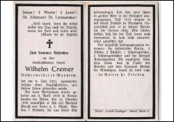 Tod durch Unglücksfall; Bäckermeister in Manheim; ∞ 15.10.1899 Gertrud Preuß aus Treis a.d.Mosel; 7 K., davon 2 früh †; seit 1919 wohnte er in Manheim; |