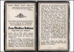 Eltern: Friedrich Rüttgers u. Margareta geb. Braun; ∞ in Manheim 11.5.1915 Mathias Dahmen; 2 K.; schwere Erkrankung |