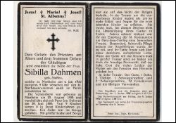 ∞ 20.6.1885 Peter Josef Dahmen; 9 K., davon 5 als Kind †, 1 Sohn im 1. Weltkrieg gefallen; |