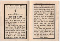 Opfer 2. Weltkrieg: Tod durch Artillerietreffer; Eltern: Heinrich Joseph Esser u. Odilia geb. Erken; ∞ 26.11.1921 Margareta Förster aus Golzheim; 2 K., davon 1 jugendl. †; der einzige Sohn in Kriegsgefangenschaft |