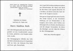 Eltern: Fritz Roth u. Anna geb. Sterzenbach; ∞ 1.4.1931 Katharina Außem aus Götzenkirchen; 2 K., davon 1 † |