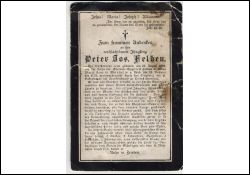 Wohnort: Manheim; Jüngling; Eltern: Engelbert Felden u. Anna Maria geb. Haas; 2 J. Soldat im 1. Weltkrieg; Nachopfer des Krieges: durch unglückliche Umstände geriet er in die Gewalt der feindlichen Besatzung, wurde vom Typhus befallen u. starb nach kurzem Leiden; 1 Bruder vor 1 J. im 1. Weltkrieg gefallen |