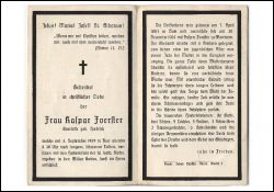 ∞ 30.12.1905 Kaspar Foerster in Manheim; 6 K., davon 1 jugendl. †; langes Leiden; Druck in Düren |