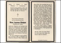 Wohnort: Manheim; Eltern: Anton Schulz u. Maria geb. Klein; ∞ 22.11.1901 Laurenz Göntgen aus Buir, † ; 8 K., davon 1 †; 23 J. lang hat sie die Toten der Pfarre zur letzten Ruhe begleitet; 1 Tochter wurde Ordensschwester |