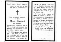 Herzschlag bei Fliegeralarm im 2. Weltkrieg; ∞ 12.8.1906 Matthias Odendall aus Mödrath; 10 K., davon 3 † |