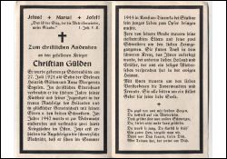 Gefallener 2. Weltkrieg; Eltern: Heinrich Gülden u. Anna Margareta geb. Engelen; 1942 Einberufung; Einsatz im Osten |