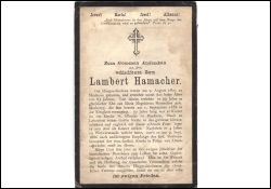 ∞ Maria Magdalena Macherey, die nach 29 J. Ehe am 1.9.1882 †; 50 J. lang Küster an der Kirche St. Alban zu Manheim; |