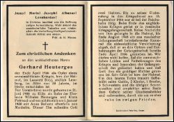 Gefallener 2. Weltkrieg; Wohnort: Manheim; Eltern: Wilhelm Heuterges u. Klara geb. Petrozzi; ∞ 1.1.1930 Anna Bellone aus Manheim; 2 Töchter; bei der Reichsbahn tätig; Einberufung 15.9.1944; russ. Kriegsgefangenschaft; Todesnachricht erst 1948 |