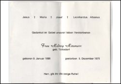 Hinzmann, geb. Tolksdorf | Vorname: |