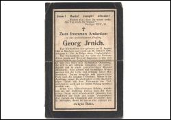 Wohnort: Manheim; Tod durch Unglücksfall mit dem Fuhrwerk; Eltern: Alban(Albert) Irnich u. Gertrud geb. Augustin, beide †; |
