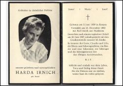 Wohnort: vermutl. Manheim; Tod durch Unfall; ∞ 13.12.1963 Rolf Irnich aus Manheim; 2 K. (Claudia, Udo) |