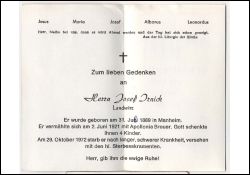Wohnort: vermutl. Manheim; ∞ 2.6.1921 Apollonia Breuer; 4 K.; lange, schwere Krankheit |