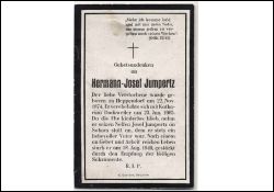 ∞ 23.1.1905 Katharina Dackweiler; kinderlos; nahm seinen Neffen Josef Jumpertz an Sohnes statt an; Druck in Bergheim/Erft |