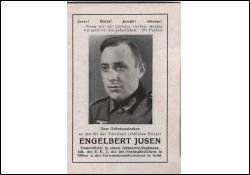 Gefallener 2. Weltkrieg; Eltern: Adam Jusen u. Anna Els. geb. Meuser; ∞ 16.3.1940 Helene Förster, Tochter der Ehel. Gottfried Förster u. Maria geb. Groß zu Manheim; 2 K.; Sommer 1941 Einsatz an der Ostfront; zweimalige Verwundung; Aug. 1943 erneut schwer verwundet; zuerst Lazarett Tapiau, dann Überführung nach Jülich; |