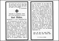 Gefallener 2. Weltkrieg; Eltern: Joseph Müller u. Katharina geb. Lamour; ältester von 3 Söhnen; 19.6.1940 Einberufung; seit Frühjahr 1942 Südabschnitt d. Ostfront; jüngster Bruder Heinrich am 1.1.1944 gefallen |