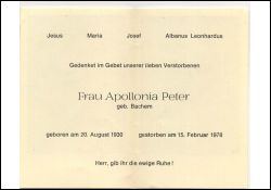 Peter (Peters?), geb. Bachem | Vorname: |