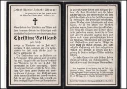 Wohnort: Manheim; ∞ 7.8.1881 Anton Rottland aus Manheim, † 14.7.1927; damals schon schwer leidend; 8 überlebende Söhne, 2 Töchter †; |