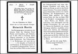 Opfer 2. Weltkrieg; Eltern: Peter Moritz u. Josephine geb. Schmitz; Jugend in Habbelrath; geriet in Stalingrad in russische Gefangenschaft; in einem Dörfchen der Wolgadeutschen zur letzten Ruhe gebettet; |
