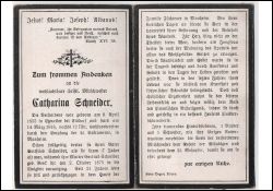 Jungfrau; Wohnort: Manheim; mit kaum 7 J. verlor sie ihren Vater Gottfried Schneider; ihre Mutter Gertrud Schneider geb. Beeck † 2.10.1875; lebte seit 21 J. bei Familie Füchtener in Manheim; |