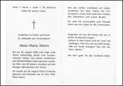 ∞ 19.11.1947 Peter Moers; 2 überlebende Kinder; Lungenembolie (Habbelrath) |
