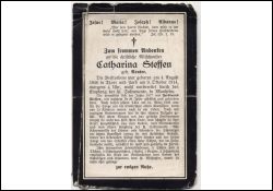 Wohnort: Manheim; ∞ 1877 Ferdinand Steffen, † 16.3.1906; 14 K., davon 4 †; |