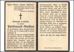 Wohnort: Manheim; Eltern: Christian Steffen u. Katharina geb. Braun; beschäftigt b. Reichseisenbahn; lässt Brüder u. Schwester zurück |