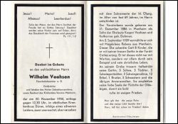 Wohnort: vermutl. Manheim; Eisenbahnbeamter a.D.; Inhaber des Hohen Sebastianusordens; Rendant des Kirchenbauvereins Manheim; Eltern: Kaspar Vaahsen u. Katharina geb. Dahmen: ∞ 5.9.1909 Magdalena Robens aus Manheim; 8 K. |