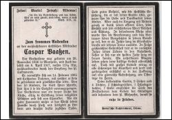 ∞ 14.2.1885 Catharina Dahmen; 10 K., davon 3 †; 44 J. im Eisenbahndienst; unheilbares Magenleiden |