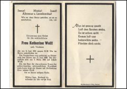 Wohnort: vermutl. Manheim; ∞ 5.3.1916 Jakob Wolff; schleichende, schmerzhafte Krankheit |