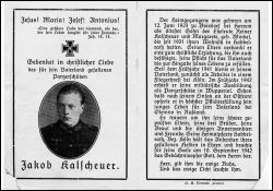 Gefallener 2. Weltkrieg; Eltern: Reiner Kalscheuer u. Margarete geb. Winkel; seit 1931 Wohnsitz in Habbelrath; Frühj. 1941 Einberufung |