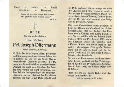 Eltern: Wilhelm Ürlings u. Klara geb. Fahsbender (Faßbender); ∞ 2.2.1896 Peter Joseph Offermann aus Merode; 4 K., daon 1 nach wenigen Tagen †, 1 Tochter mit 21 J.; 1 Sohn wurde Priester |
