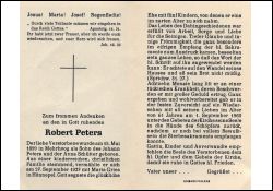 Eltern: Johann Peters u. Anna geb. Schütter; ∞ 27.9.1927 Maria Gries in Hönnepel; 5 K., davon 1 früh †; seit 18 Monaten leidend; Druck in Kalkar |