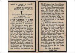 Eltern: Peter Josef Kurten u. Odilia geb. Hemmerich; ∞ 27.11.1920 Bäckermeister Peter Boveleth, † 30.1.1930; 4 K.; ∞ 24.11.1931 Bäckermeister Matthias Valder aus Etzweiler; 1 K.; jahrelanges Leiden; Druck in Bedburg/Erft |