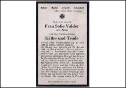 Opfer 2. Weltkrieg: starb bei Fliegerangriff mit ihren Zwillingskindern Käthe u. Trude; ∞ 12.9.1926 Ferdinand Valder aus Etzweiler; |