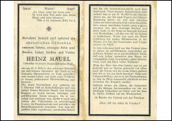Gefallener 2. Weltkrieg; Eltern: Heinrich Mauel u. Gertrud geb. Küppers; 2 J. Handelsschule, dann Reichsfinanzschule; RAD, dann 19.10.1943 Eintritt ins Heer |
