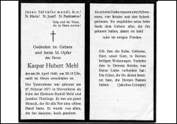 Eltern: Rudolf Mehl u. Josefine geb. Thürlings |