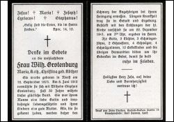 Längere Krankheit; ∞ 8.6.1912 Wilhelm Stephan Grotenburg; 3 überlebende Töchter |