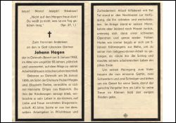 Eltern: Hubert Hagen u. Elisabeth geb. Thelen; ∞ Henriette Ditges aus Büderich; kinderlos;kehrte leidend aus dem 2. Weltkrieg zurück; nach schwerer Operation wieder genesen; auf dem Weg zur Arbeit bei der Bahn erlitt er einen Schlaganfall |