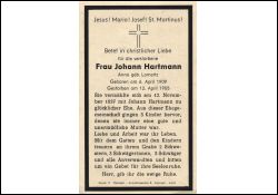∞ 12.11.1937 Johann Hartmann; 3 K.; Druck in Lank |