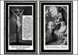 ∞ 6.2.1891, seine Frau † vor 14 J.; 13 K., davon 12 †; 1 überlebende Tochter; Enkelin Clärchen |