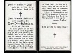 ∞ 29.8.1885 Peter Holendung, †; 3 Söhne, davon 2 †; Druck in Lank |